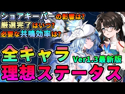 【鳴潮】厳選完了はいつ?全キャラ理想ステータスVer1.3最新版★必要な共鳴効率/クリティカル/攻撃力など厳選完了の目安を解説。ショアキ―パーの最適ステータスへの影響は?【めいちょう/WuWa】ユウゴ